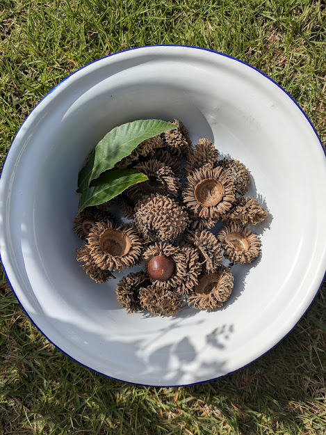 くぬぎの殻斗(帽子の部分)を使って染める染め方は古代から伝わっているものです。